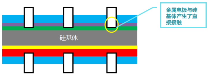 将P型多晶硅和N型多晶硅分隔开,如果分隔不彻底,底部出现短路,会导致复合损失 |