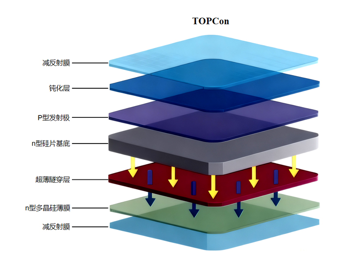 当前,TOPCon电池是光伏行业的主流高效技术路线,其量产效率已达约25.3%。然而,要进一步逼近26%乃至更高的理论极限,我们必须直面其核心效率损失。TOPCon电池目前最大的效率缺口来自前表面。与传统背面的优异钝化接触结构不同,电池前表面仍存在金属与硅基体的直接接触,导致严重的载流子复合。同时,前表面的多晶硅层会产生强烈的寄生光学吸收,损失大量光生电流。