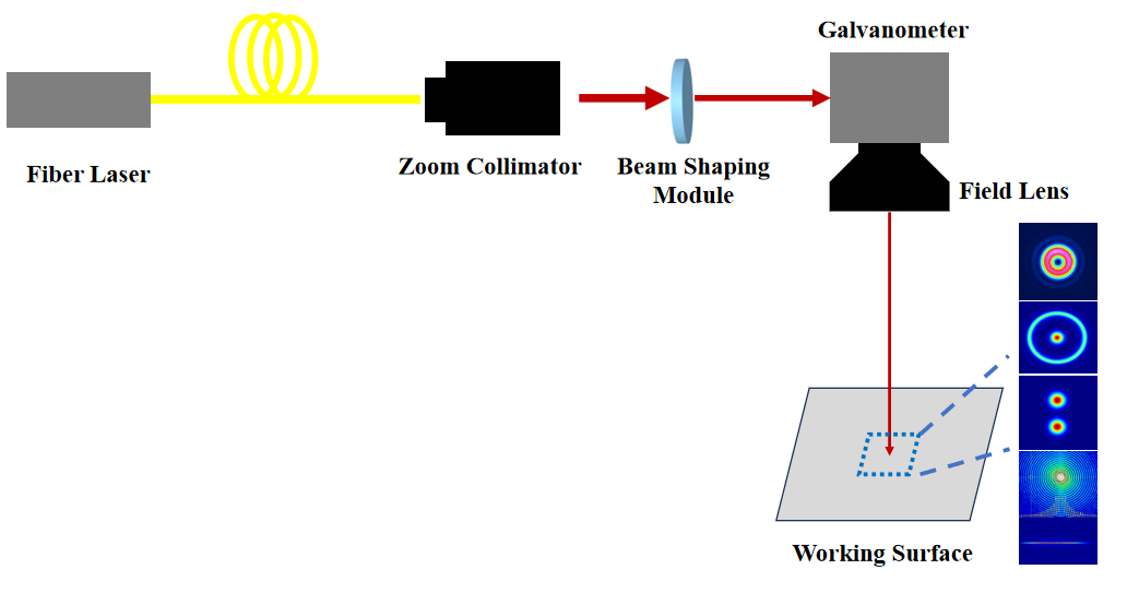 准直扩束模块(可设计电动)/环形或点环DOE/匀化DOE/点环无级调节模块(电动)/场镜(可根据整形效果定制场镜) |