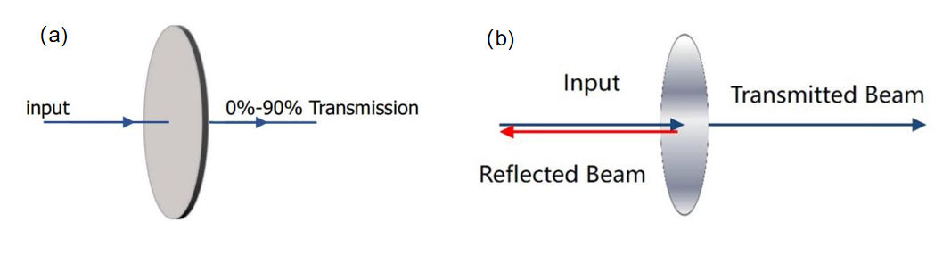 图2.(a)吸收型中性密度滤光片(b)反射型中性密度滤光片