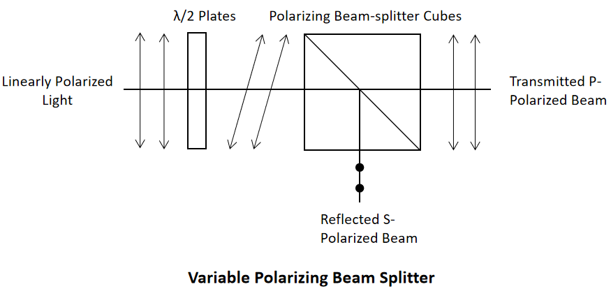 当线偏振光入射时,旋转半波片可以改变入射光的偏振态,经偏振分束立方后透射P光,反射S光,从而实现连续调节分光比。