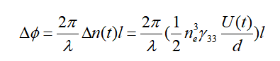 式中,λ为光波波长,为电场作用下折射率的变化,γ33为有效电光系数,U(t)为施加在晶体上的电压,l为晶体的长度,d为晶体的厚度。
