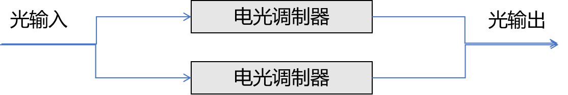 (2)强度调制:EOM配合马赫-曾德尔干涉仪可以实现对光强度的调制,其原理如图2所示。