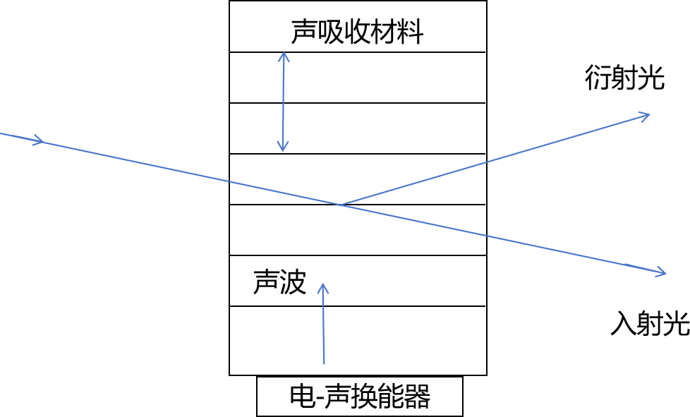 产生声光效应的器件叫声光器件,如图5所示,声光器件由声光介质、电-声换能器和声吸收材料等组成。