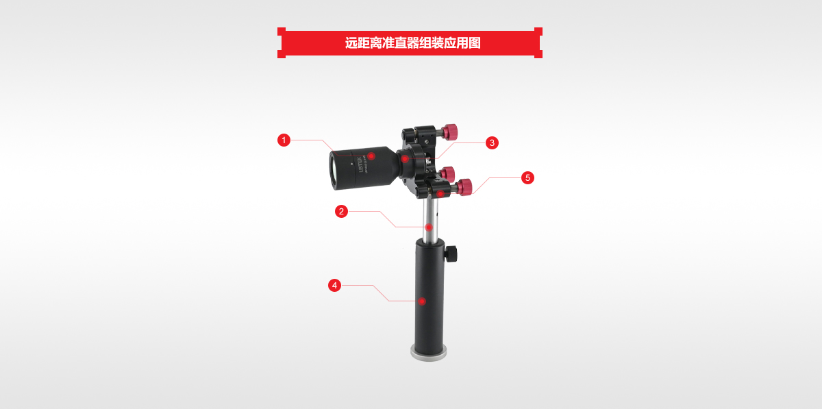 | LBTEK 远距离准直器组装应用图 | ① 远距离准直器LRC1550-14.2-APC×1 | ② Ø12 mm不锈钢光学接杆OP12-40×1 | ③SM1 螺纹准直器安装件TAD-18×1 |