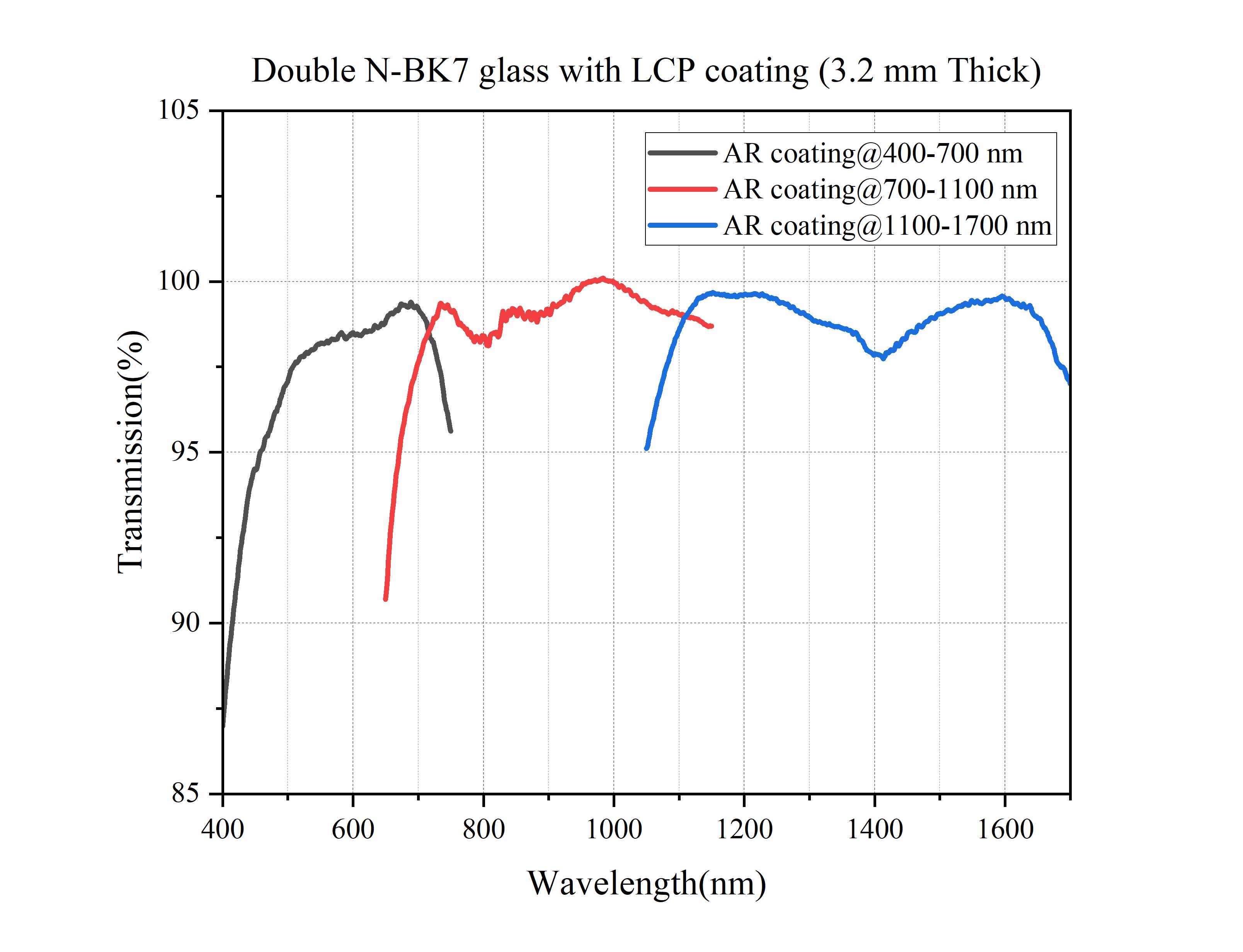 LBTEK 平板柱透镜阵列是一种基于液晶聚合物的衍射光学原理实现光束一维整形和匀化的平板光学元件,由聚合物薄膜和双片N-BK7窗口片组成,聚合物薄膜上的一维阵列式相位分布实现柱透镜阵列功能。其对光束的调制作用与入射光束偏振特性和柱透镜单元参数相关:通过将入射光束调节为左旋圆偏振光(右旋圆偏振光),可以得到先会聚后发散的右旋圆偏振出射光束(发散的左旋圆偏振出射光束),且发散或会聚角遵循sinθ=λ/p,其中,λ为设计波长,p为单元柱透镜相位周期,通过调节柱透镜单元的相位周期,能够灵活控制出射光束的发散角大小,实现不同规格的光束一维整形和匀化需求。同时,平板柱透镜阵列为单波长设计,无球差,入射面镀有增透膜,具有较高的透过率和衍射效率。以上特性使得平板柱透镜阵列在成像、机器视觉、半导体激光器准直等科研领域的应用中有着较大的潜力。