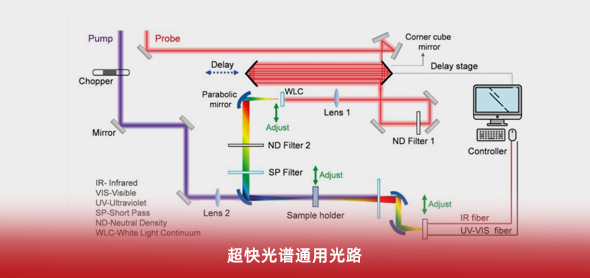 超快光谱探测技术,是指利用脉冲激光器对样品进行激光刺激,并用激光对刺激后的样品进行探测,以研究样品在极短时间内的光物理、光化学和光生物反应的一种方法,超快光谱探测技术类似超快摄像机一样,让人们能够通过一帧一帧的慢动作观察处于化学反应过程中原子与分子的转变状态。