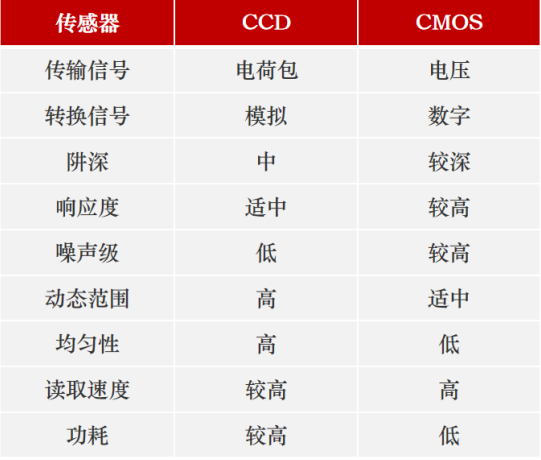 相机视觉传感器均可分为以下两类:电荷耦合器件(CCD)和互补金属氧化物半导体(CMOS)成像器。大多数CCD快门为全局快门,具有较低噪声、高动态范围以及高均匀性等特点,相较于CMOS帧率为中等,而CMOS则在读取速度与功耗上有显著的优势。选择不同的相机,会得到不同的视场大小,生物样品在成像于相机上时,样品区域尺寸受相机传感器尺寸的影响,相同系统放大倍率下,更大尺寸的传感器会产生更大的视场,便于研究人员通过相机或目镜观察到更多的微观样品数量。