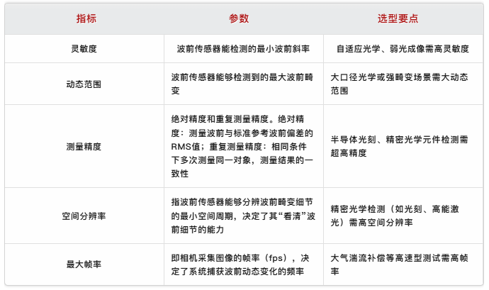衡量Shack‒Hartmann波前传感器的主要性能指标为灵敏度、动态范围、测量精度、空间分辨率及帧率。选型时需按应用场景优先级排序:精密检测优先精度与分辨率,动态监测优先帧率。核心参数需平衡,避免单一指标过度优化导致其他性能下降。