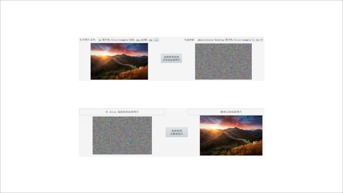 设备包含发射端Alice和接收端Bob,可进行偏振态的制备、发送和检测,让学生认识光纤网络中所需要使用的各类元器件;软件提供数据的后处理(对基、纠错、保密放大)、密钥分发和加解密实验等功能,让学生体验完整的量子密钥分发流程。
