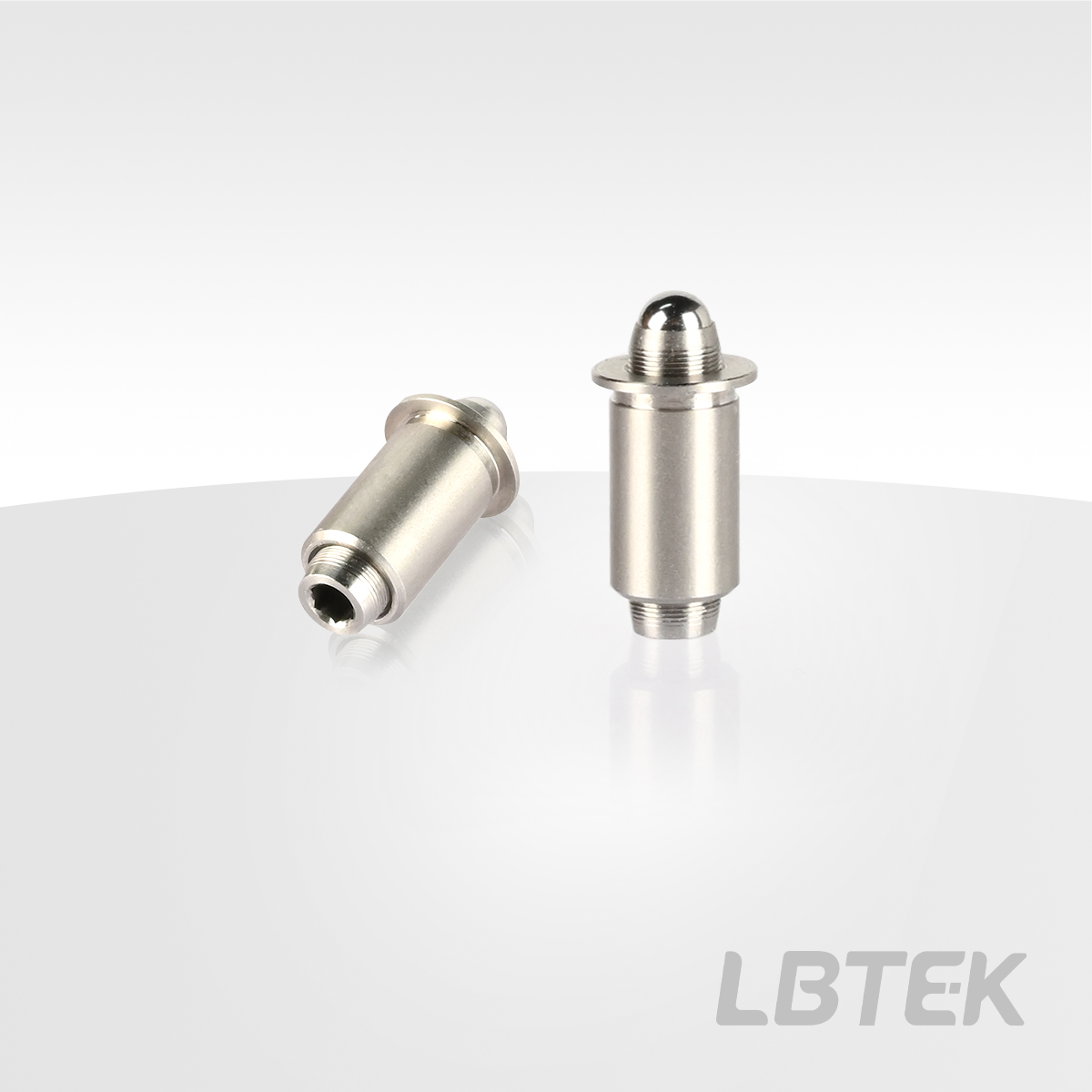 LBTEK不锈钢精密调节螺纹副,M4×0.2主要用于光机械运动产品,比如常见的光学调整架系列产品,控制产品运动的精度。不锈钢六角调节器的直径为M4,头部有2mm内六角孔,不锈钢螺纹衬套推荐配合的孔径大小为Ø 5.5mm(0~+0.02mm),二者配合实现0.2mm/转的调节精度。