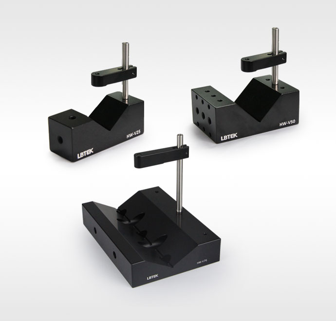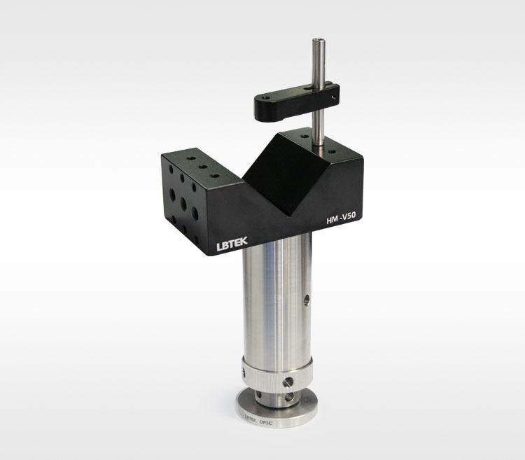 LBTEK V型夹持器,常用于夹持圆柱体的光学或机械元件。V型夹持器HM-V25和HM-V50以及HM-V76,可分别夹持直径3 mm~25 mm和10 mm~50 mm以及12.5 mm-76.5 mm的圆柱体,其中HM-V50和HM-V76还可同时安装多套压臂,以提高夹持的稳定性。同时,两种V型夹持器的压臂可左右换位,V型块后侧、左右两侧和底部有M4或M6螺纹孔,可安装在标准的光机械元件上。