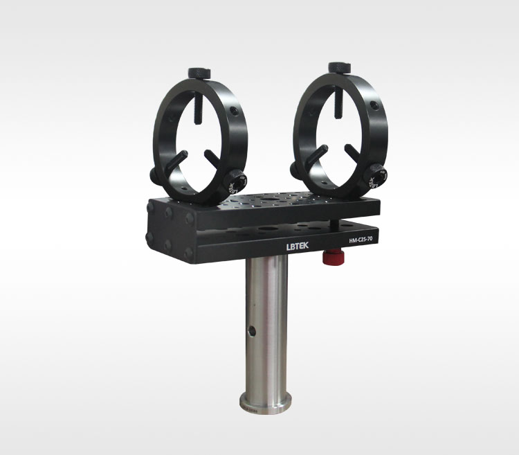 LBTEK激光管夹持器可夹持直径25 mm-65 mm的激光器,底座可做一维的俯仰调节,调节范围±3°。管夹具有三个M4安装孔和5个M6手拧螺丝孔,可转角度安装,可在底座面板上调整两管夹之间位置安装,也可单独作为夹具使用。底座面板上具有若干M4、M6螺纹孔,中心为M6沉头孔,可单独使用或安装在面包板或基座等标准光机械件上。