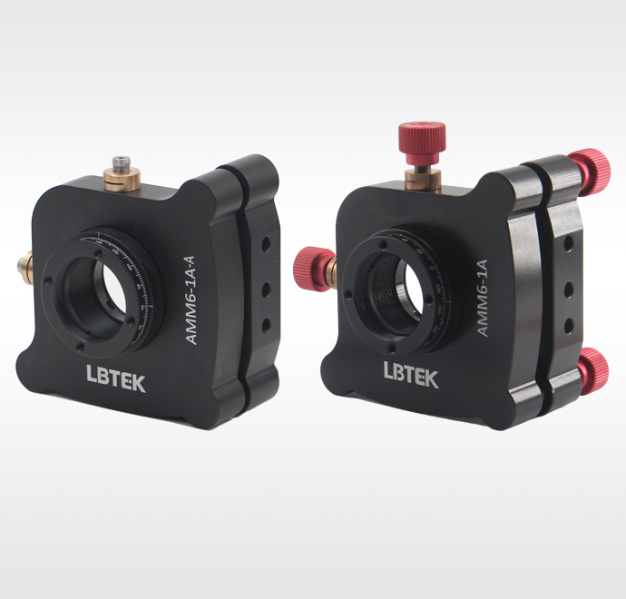 LBTEK提供的六轴光学调整架,带SM1内螺纹孔,和一个SM1R卡环,可安装最大厚度为15.8 mm的Ø25.4 mm的光学元件,可实现六个轴(XYZ平移,俯仰、偏转和360°旋转)调节,六轴都可锁紧,AMM6-1A和AMM6-1A-A 区别为AMM6-1A-A螺纹副不带螺帽。两者均带3个M6X025和2个M5X025的精密调节螺纹副,螺纹衬套带锁紧结构,360°旋转可锁定,其锁紧螺钉可用2.0 mm和1.5 mm六角扳手锁定。购买LBTEK 六轴光学调整架赠送1个2.0 mm六角扳手、1个1.5 mm内六角扳手,2个M4圆柱头内六角螺钉。