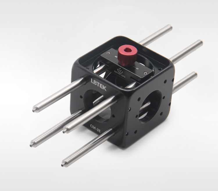 LBTEK的CM-R/S安装架用于在30 mm同轴系统中360°手动旋转光学元件。CM-R使用两个附带卡环,可以安装Ø25.4 mm、最大厚度为7.4 mm的光学元件。CM-S可安装Ø25.4 mm、最小厚度为4.7 mm的光学元件,通过侧面紧定螺钉固定光学元件。利用挠性压块和M3的锁紧螺钉,CM-R/S均可在不拆卸同轴杆的情况下快速安装光学元件。松开左右两边的M3锁紧螺钉,可从同轴杆中快速卡入/拔出。顶部红色旋钮可通过滚花或5 mm内六角扳手旋转,侧面的M3螺丝用于锁紧旋转。红色旋钮带5°间隔刻线,提供角度指示。