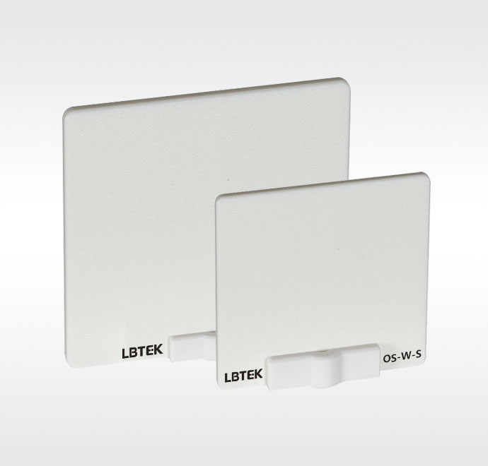 LBTEK观察白屏有75.0×75.0×2.8 mm、150.0×150.0×2.8 mm两种尺寸可选,正面是哑光饰面,反面带有8%的微反射。这些哑光表面可提供均匀的漫反射,以最佳方式呈现干涉图样以及其它图像。观察白屏的白色聚苯乙烯材料便于观测明亮的图像和光束,光甚至能穿透屏到达其背面。每个观察屏包含一个十字线贴纸,可用于光束对准。观察白屏底部带有M4的螺纹孔用于安装接杆,便于将观察白屏集成到光机械装置中。
