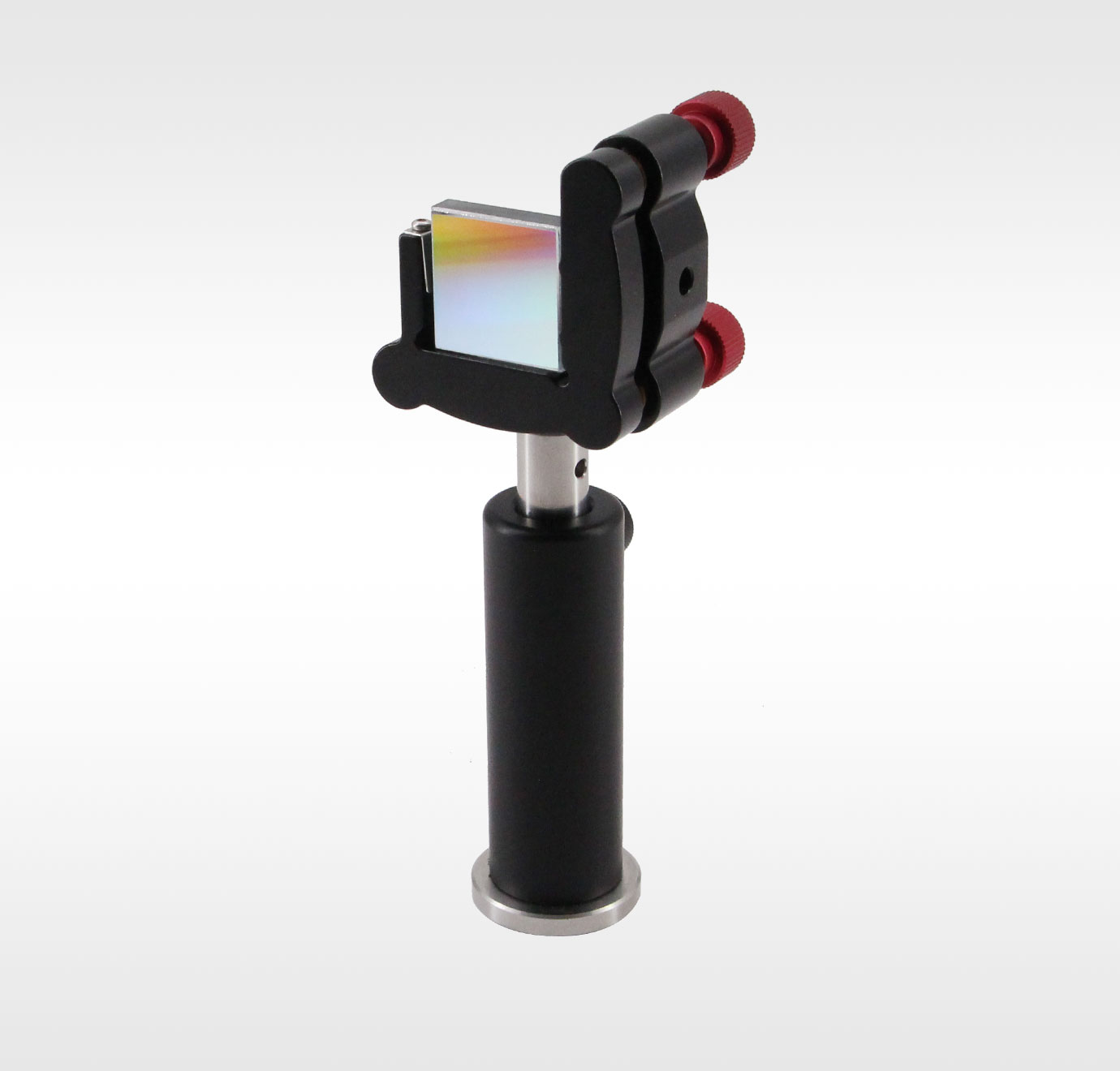 LBTEK的光栅调整架转接件可安装在Ø1英寸光壁光学调整架上,该装配方式可以实现被夹持光栅俯仰偏摆角度调节。同时该转接件结构简单,通过滑动转接件上下方的压块,使得压块背部连接螺钉在加工的槽内滑动,从而调整可夹持光栅和矩形镜片高度,锁紧背部两个M3连接螺钉,完成光栅和矩形镜片位置的固定。该调整架转接件为三点固定式、可调的安装机制包括两条底面接触线和一个顶面平面弹簧接触。