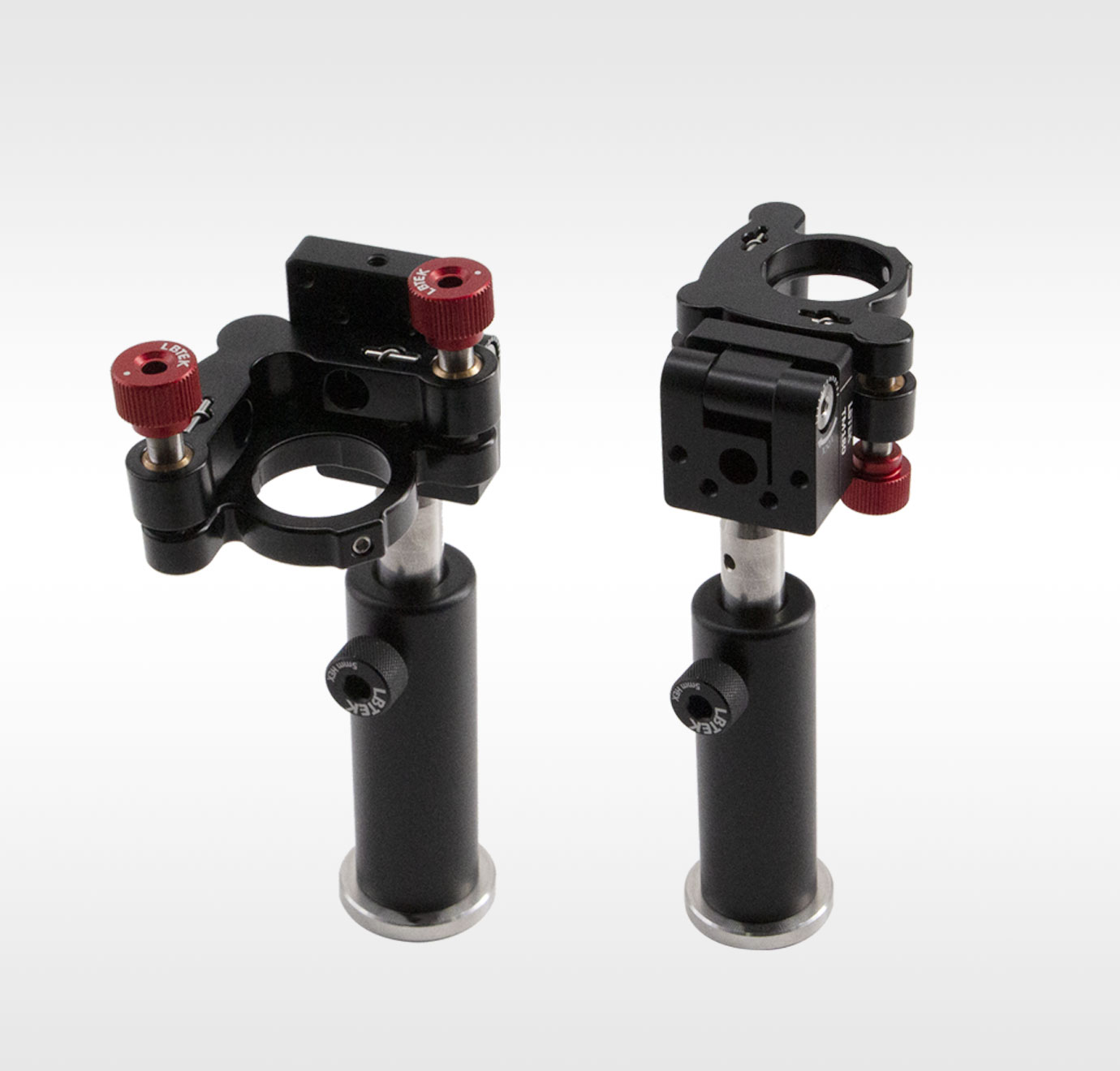 LBTEK 180°翻转平台的安装平台尺寸为32 mm×32 mm,表面分布了11个M4安装螺孔,板侧面均有1个M4安装螺孔,底板带1个M4沉头孔和4个M4螺孔,用于额外的安装选项。使用底板中心的M4沉头孔安装时,顶板可锁定在相对于光学平台表面0°到90°之间的任意角度;使用侧面的M4螺孔安装时,顶板可相对于光学平台表面在-90°与+90°之间调节。如需锁定平台,可用六角扳手拧紧侧面的固定螺栓,侧面每隔15°刻有标记。