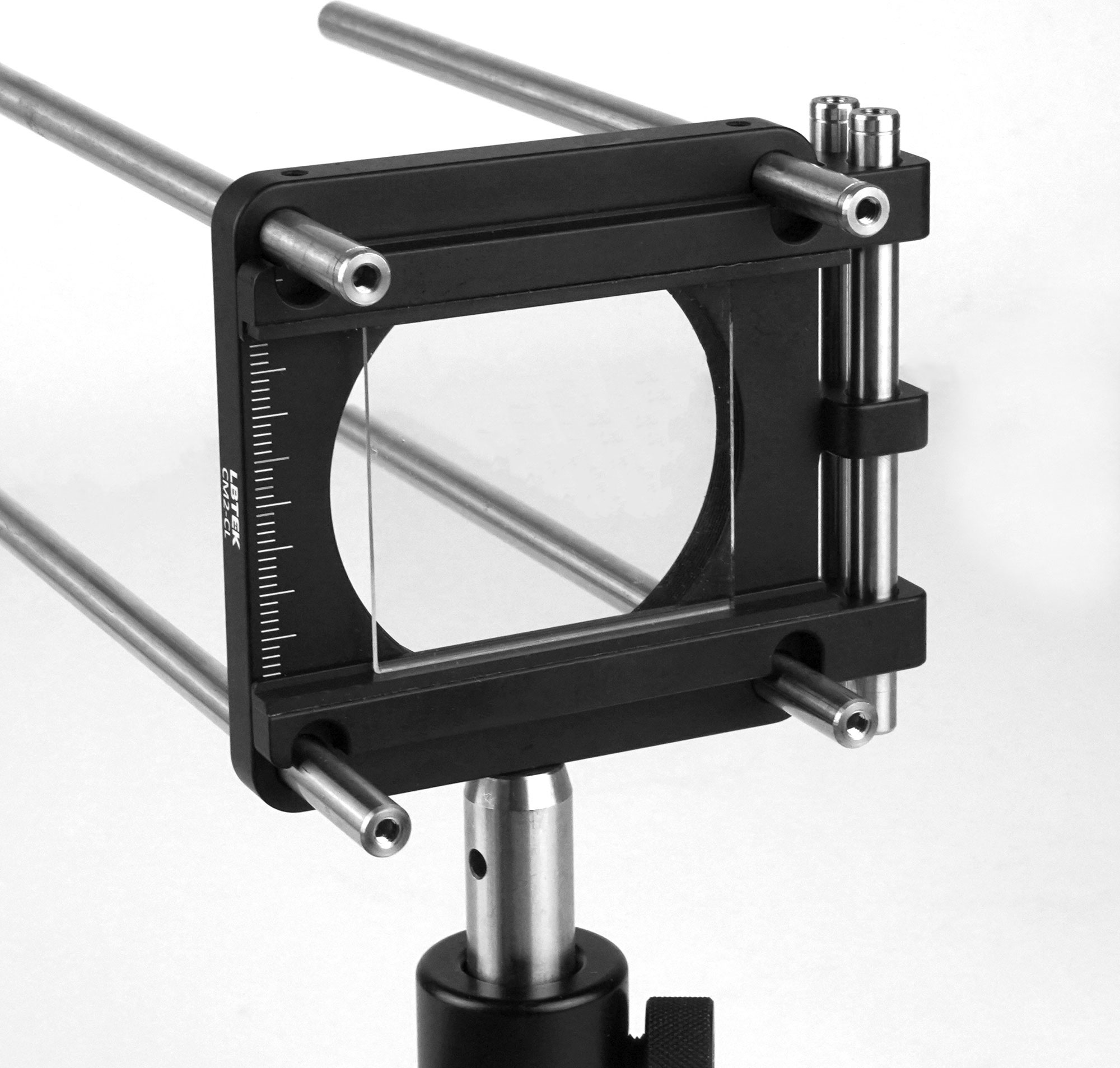 - 在同轴系统内,上下滑动臂安装光学元件高度范围4 mm至17 mm之间
