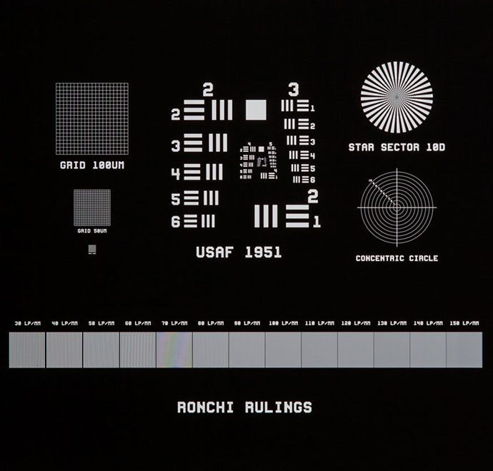 LBTEK RTR1Ee测试靶是适用多种测试的组合测试靶,包含一个1951 USAF图案(2到7组)、一个扇形星图案、一个同心圆图案、三个网格图案(100 µm、50 µm和10 µm)以及朗奇刻线图案(30到150 lp/mm)。可用于成像系统成像质量的评估(分辨率、场曲、聚焦误差、像散、图像畸变等)。分辨率测试靶包含正(明场)、负(暗场)分辨率测试靶。正分辨率测试靶是在钠钙玻璃基底上镀铬,使非图案部分透光。负分辨率测试靶则是在基底上镀铬,使图案部分透光。如有其它定制需求,请联系技术支持。