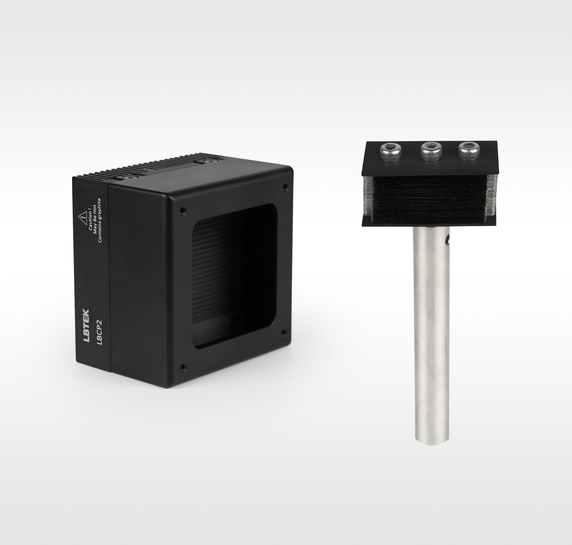 LBTEK 提供的LBC1可见光光挡适用波长为400 nm-2000 nm,仅适用于连续光。LBC1包含1根PO-75接杆进行预装发货,并附送接杆拆装扳手,客户可根据自身需求,更换为顶部M4螺孔的光学接杆。LBCP2红外光挡适用波长为1-12 μm,带石墨垫,可用于吸收连续光或脉冲光激光束。红外光挡使用时,可通过拆卸其前面板改变入射孔径(尺寸为50 mm × 50 mm,使用附送的2 mm六角扳手将前面板拆卸后,入射孔径可以增大到69 mm × 50 mm),通常情况下,前面板可用于保护石墨垫。光挡底部均可安装顶部带M4螺钉的光学接杆用于自由空间,红外光挡兼容60 mm同轴系统。