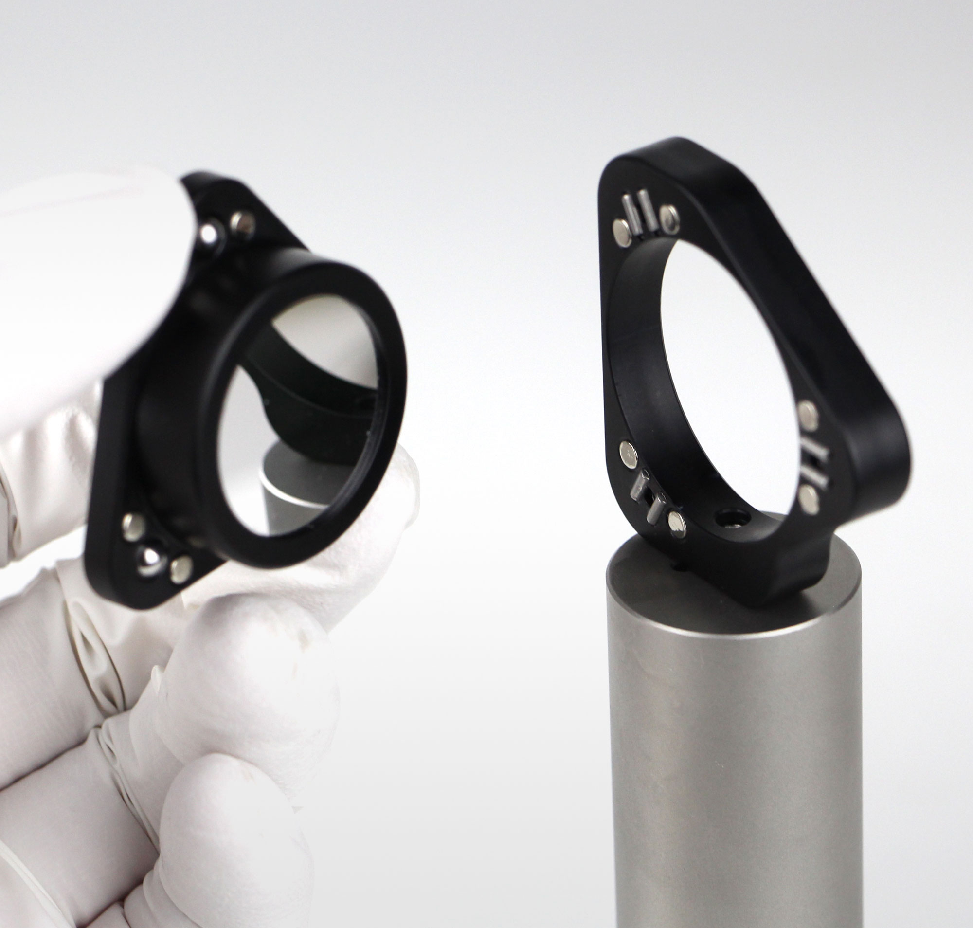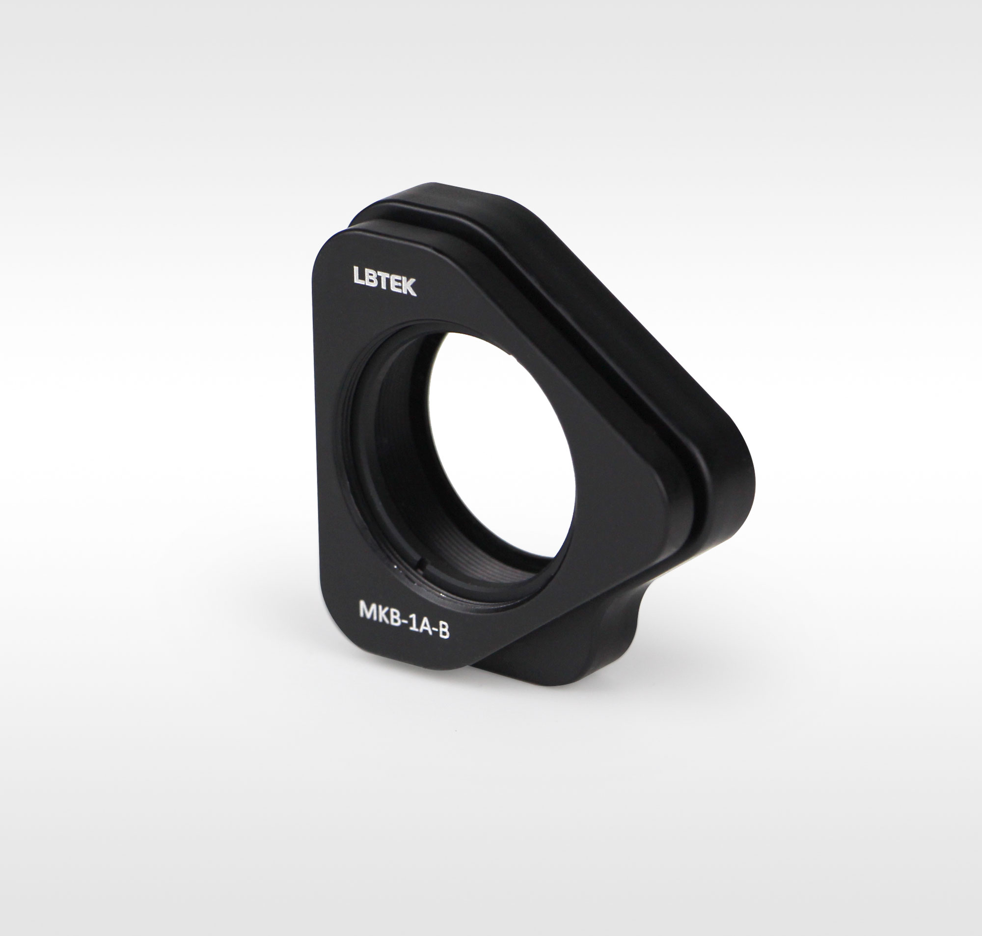 LBTEK 磁性快拆安装座MKB-1A包括后板MKB-1A-A与前板MKB-1A-B两部分,通过钕铁硼磁铁与440C高精度定位钢球吸将其附在一起,因此前板在使用过程中可以很方便的从光学系统中装入或拆除。利用附带的SM1R卡环,可将最大厚度为9 mm的光学元件固定在前板的SM1内螺纹中。后板同样带有SM1螺纹孔,可扩展其它组件,底部带M4螺纹孔,在自由空间使用。