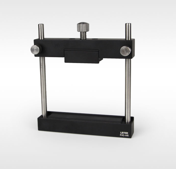 LBTEK 提供的杆式调整支架可通过调整压头夹持位置快速安装各种尺寸的光学元件,其中PAS-QM适用于安装圆形光学元件,PAS-HR适用于安装矩形光学元件。调整支架底部均带有M6安装孔,可固定在光学平台或光学接杆上。