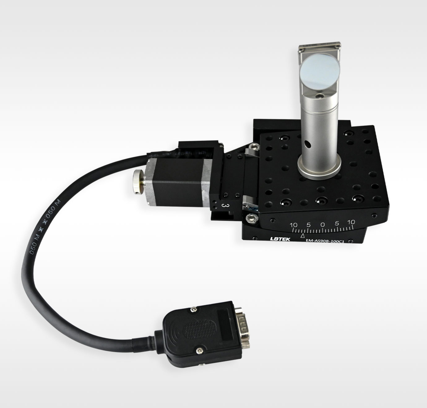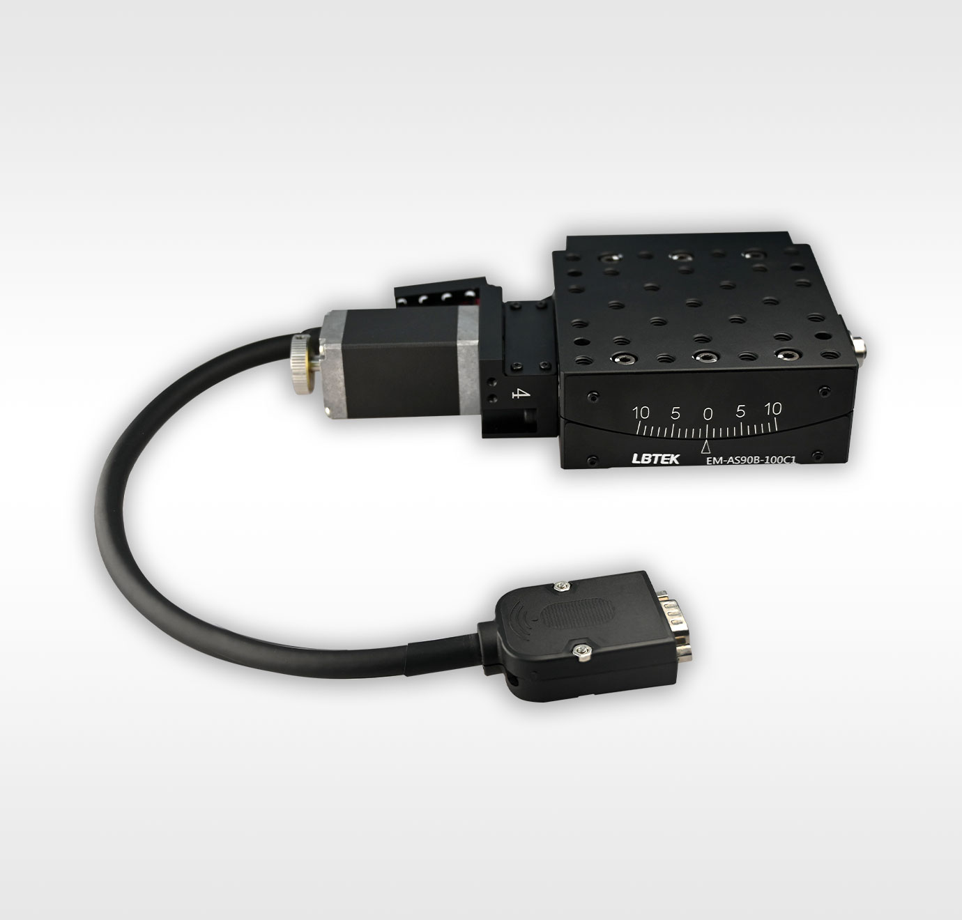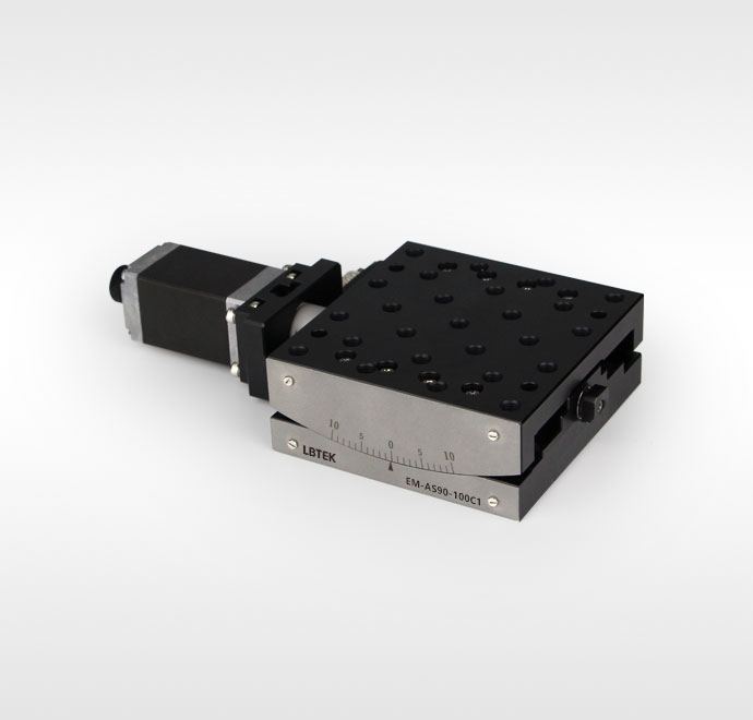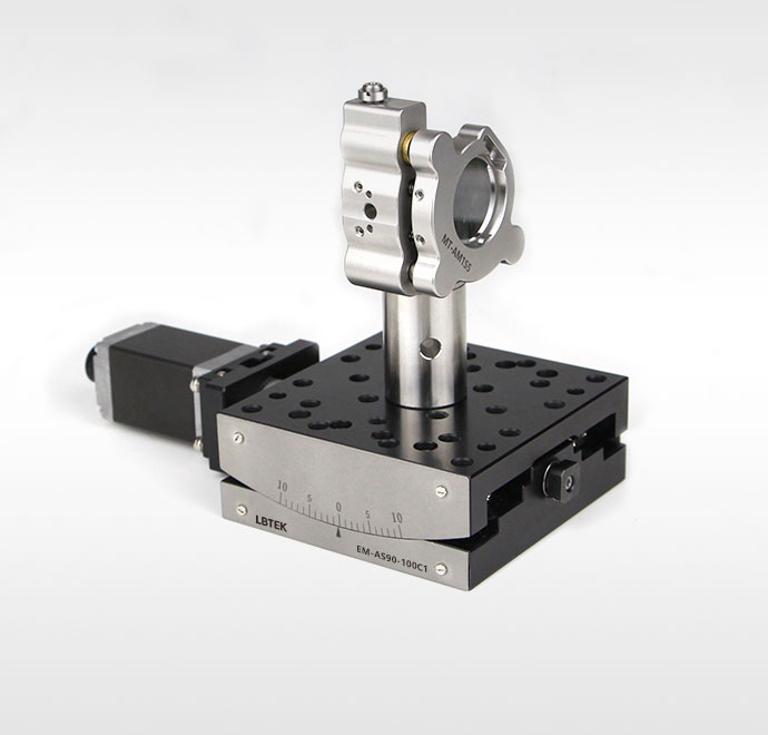 LBTEK 五相步进电动角位移台为五相步进驱动的角度调节位移台。此位移台在整个移动范围内提供精确、稳定的高度调节。位移台电机能够在90 mm×90 mm的安装平台上移动重达5.0 kg的负载,具有较小的俯仰翻转偏差和高重复性。台面具有25个M6螺纹孔用于安装光机械组件;底部具有四个M6沉头孔,可使用M6螺钉安装到面包板、光学平台或其他位移台上。位移台需搭配电动位移台控制器进行使用,LBTEK提供EM-CS5-x系列控制器可供用户选择。