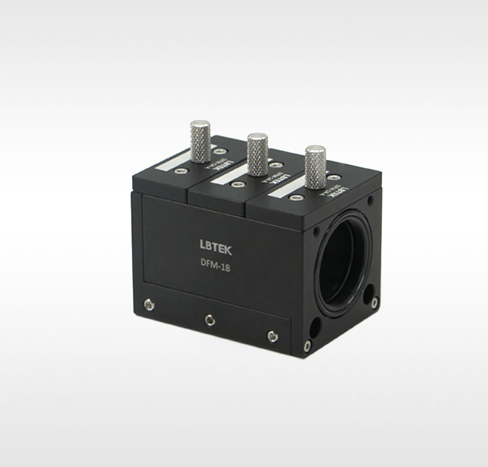 LBTEK 提供的多级可拆卸滤光片安装架DFM-1B可同时安装3个滤光片,附带3个DFM-1A-A插条,安装Ø25.4 mm、最大厚度9 mm的光学元件。插条与主体通过燕尾槽设计进行拆卸组装。底部带有M4螺纹孔用于连接光学接杆,主体带有M3螺纹孔和Ø6 mm通孔用于兼容30 mm同轴系统。整个滤光片安装架各零件贴合处进行了遮光设计,通过密封条进行密封遮光。同时端面带有一个密封圈,将两个安装架进行叠加时可以有遮光的作用。