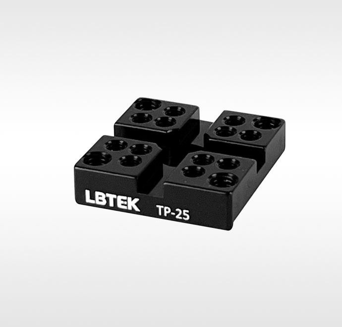 LBTEK二轴微型燕尾式位移台,满足XY二轴使用的需求。可沿每个轴的整个行程范围实现平滑的线性定位,最大行程13 mm,采用M3×0.35精密调节螺纹副。侧面具有锁定螺钉,可用1.5 mm六角扳手锁定位移台,防止意外的移动。台面中心的M4螺纹孔可实现多种安装选择,同时底板转接架能安装固定在面包板或其它光学平台上,并现实快速拆装。