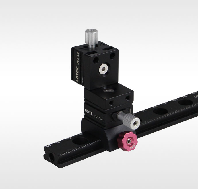 LBTEK XYZ三轴微型燕尾式位移台,满足三轴使用的需求。可沿每个轴的整个行程范围实现平滑的线性定位,最大行程13 mm,采用M3×0.35精密调节螺纹副,侧面具有锁定螺钉,可用1.5 mm六角扳手锁定位移台,防止意外的移动,台面中心的M4螺孔可实现多种安装选择,同时底板转接架能安装固定在面包板或其它光学平台上,并现实快速拆装。