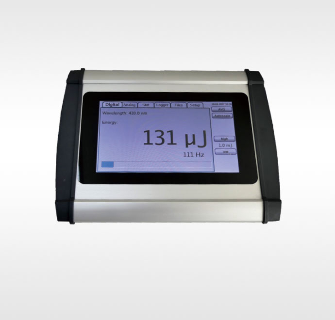 PEM710仪表适配于热电堆探测器以及热释电探测器,以测量连续激光的光功率或者脉冲激光的能量。其中用户界面采用高分辨率的图像显示器和电容式触摸屏,7 英寸显示器带有背景照明,电容式触摸按钮可实现快速访问以设置源波长或光谱。在简单的操作模式下,可以使用模拟输出或数字显示器查看功率和能量测量值。同时支持记录数据并保存到设备的内部存储器中。用户可以通过USB接口将设备连接到PC,修改和复制已保存的文件。PEM710 仪表与热释电激光能量计兼容,适用于190 nm-25 μm的波段范围。
