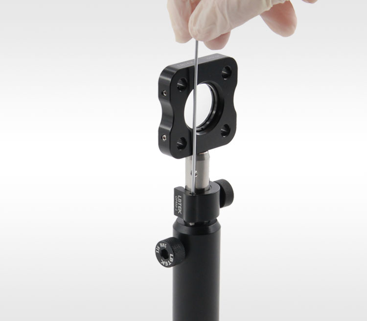 LBTEK滑动式接杆套环通过内六角滚花手拧螺丝固定在Ø12.7 mm接杆上面,把接杆放置接杆支架内时,粗调到一定高度时套上接杆套环使其底部和接杆支架顶部相接,滚花手拧螺丝固定接杆,用2 mm六角扳手调节上表面M3螺钉的支撑高度实现接杆在接杆支架中10 mm高度微调。