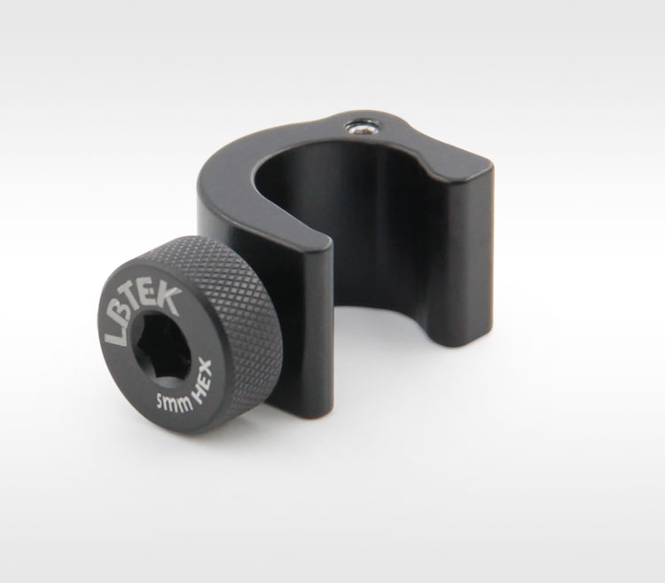 LBTEK 提供的Ø25 mm接杆套环采用C形压力设计,使其可以在Ø25 mm接杆上自由滑动。套环通过一个无损伤胶头螺钉进行固定,含有2个M4螺纹孔和1个M4沉头孔。中间的沉头通孔和一侧螺纹孔可以垂直安装光机组件。