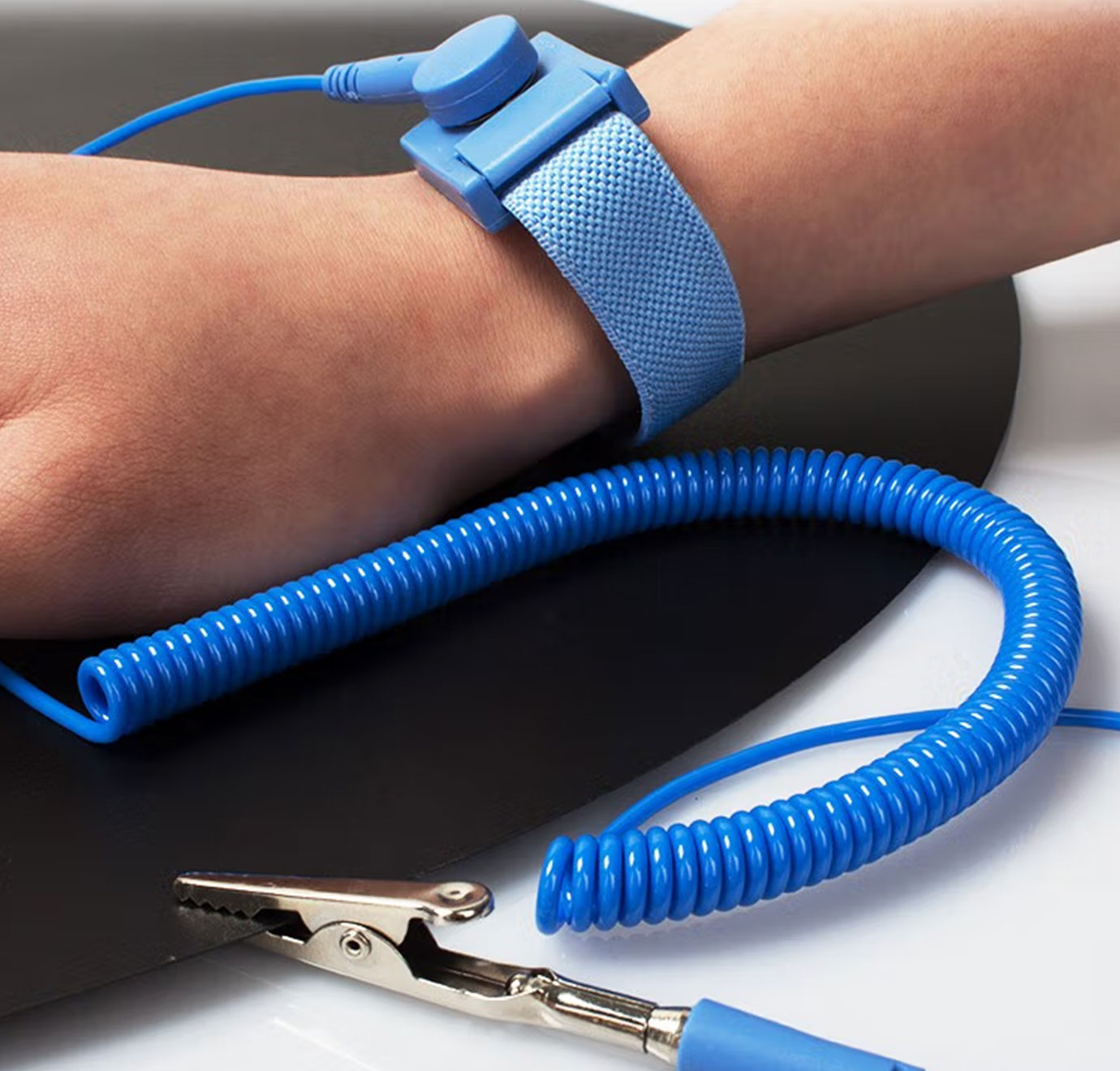 LBTEK 防静电手环是利用静电压平衡原理研发而成,是一种用于释放人体存留的静电以起到保护电子芯片作用的小型设备。它由导电松紧腕带、活动暗扣、弹簧线、保护电阻以及鳄鱼夹组成。人体皮肤与导电松紧腕带的导静电材料直接接触,当防静电手环接地时,通过接地系统将人体产生的静电迅速泄放给大地,可以避免瞬间大电流对元件的冲击,有效保护器件。LBTEK 防静电手环提供织物与金属两款可选。