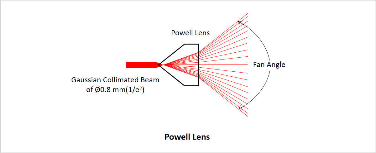 LBTEK鲍威尔棱镜也称为激光线性发射透镜,可以将准直光束扇形展开成一维激光直线,将Ø0.8 mm(1/e^2)633 nm的高斯分布准直光束的光功率进行重新均匀分布。在激光线以中心对称的80%范围内,非均匀性<30%。与柱透镜相比,鲍威尔棱镜能够消除高斯光束的中心热点和褪色边缘分布。LBTEK提供多种发散角的鲍威尔棱镜,能够根据客户激光模组进行定制,以实现更好的线均匀性。具体定制需求,请联系LBTEK技术支持。