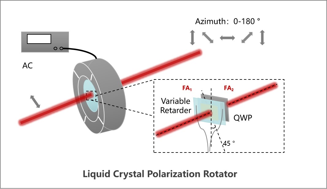 由液晶可变延迟器和聚合物真零级四分之一波片组成,辅有机械外壳及接线