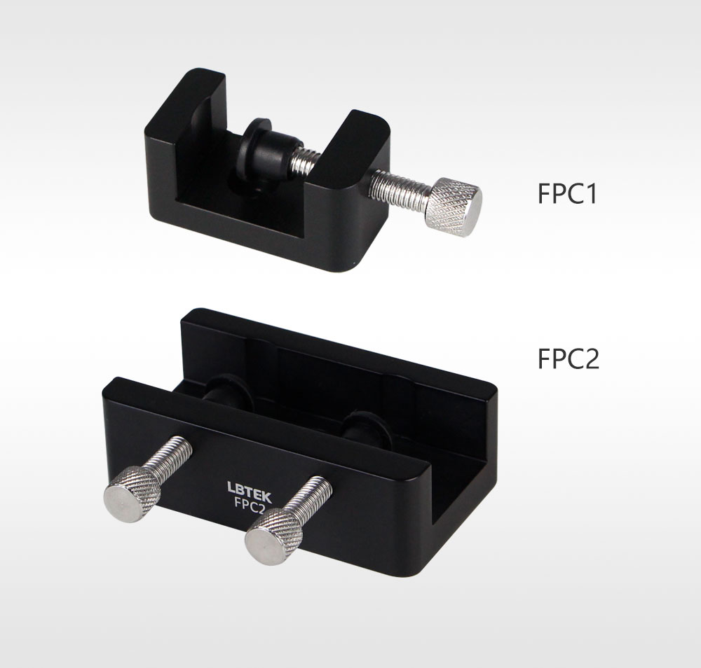 LBTEK 固定式板夹可用于固定圆形或矩形光学元件,可以调节板夹的夹持厚度,适用光学元件宽度范围为20 mm~150 mm,适用光学元件最大厚度12 mm,该固定式板夹的锁紧螺钉顶部材质为硅胶,可有效地防止被夹持光学元件受损。23 mm固定式板夹底部具有一个M4的沉头孔,77 mm固定式板夹底部具有一个M6和二个M4沉头孔,可用于连接Ø12.7 mm、Ø25 mm、Ø38 mm不锈钢光学接杆。