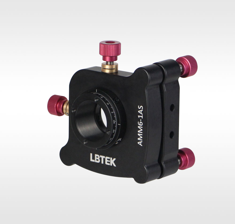 LBTEK提供的六轴光学调整架(工业级),带SM1内螺纹孔,和一个SM1R卡环,可安装最大厚度为15.8 mm的Ø25.4 mm的光学元件,可实现六个轴(XYZ平移,俯仰、偏转和360°旋转)调节,六轴都可锁紧。AMM6-1AS带3个M6和2个M5的精密调节螺纹副,螺纹衬套带锁紧结构,360°旋转可锁定,其锁紧螺钉可用2.0 mm和1.5 mm六角扳手锁定。6个高强度刚性复位弹簧,提高抗冲击和振动效果。购买LBTEK 六轴光学调整架(工业级)赠送1个2.0 mm六角扳手、1个1.5 mm内六角扳手,2个M4圆柱头内六角螺钉。